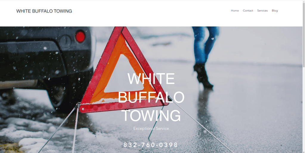 whitebuffalotowing.com is a website made for a towing company using Wix.
